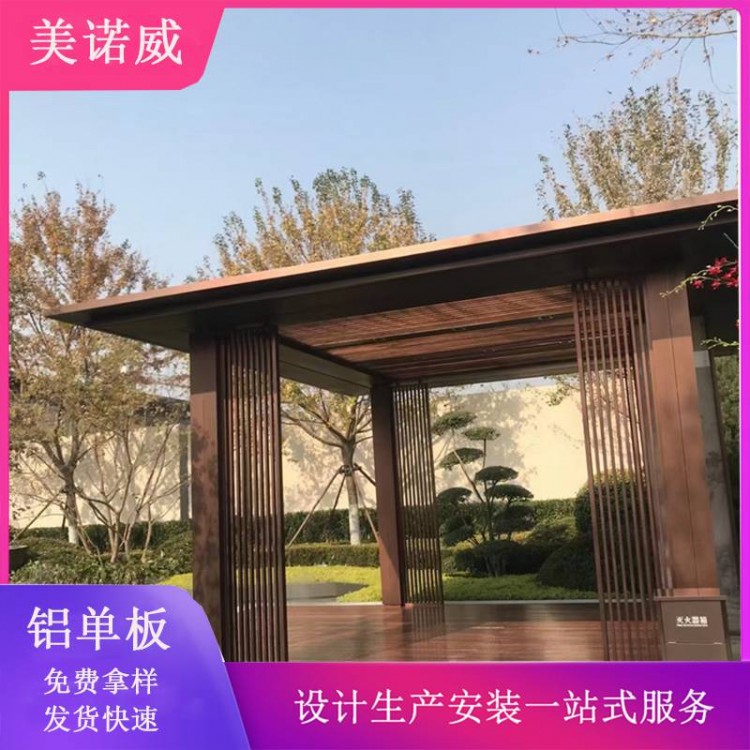 廊架铝单板表面处理 天津美诺威弧形景观亭廊架铝单板厂家