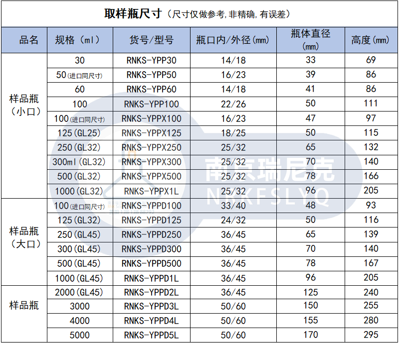 PFA、FEP取样瓶/氟树脂取样瓶(又称特氟龙试剂瓶、储样瓶、样品瓶)是高端实验室与半导体工业中的核心耗材。试剂瓶有大口和小口之分,大口适合盛放固体样品,窄口适合盛放液体试剂,不易挥发。主要用于半导体、多晶硅、太阳能、锂电池、超痕量分析、痕量分析、同位素检测、原子荧光、原子吸收,ICP-MS/OES/AAS分析等实验。可以用于存放超纯水、剥离液、电解液等等。