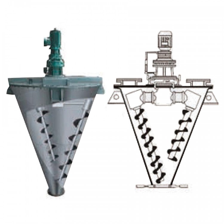 该机自转均有一套电机及摆线针轮减速机来完成,采用两螺杆非对称搅拌,使物料搅拌范围大,混合速度快,对比重悬殊,混配比较大的物料混合更为适合。
