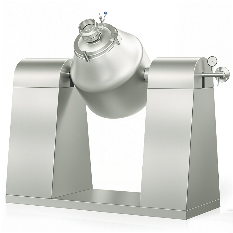 双锥回转真空干燥机是集混合干燥于一体的新型干燥机。将冷凝器、真空泵与干燥机配套,组成真空干燥装置。(如不需回收溶剂,冷凝器可不用)本机设计先进;内部结构简单,清洗容易,物料能全部排出,操作简便,能降低劳动强度改善工作环境。同时因容器本身回转时物料亦转动但器壁上不积料,故传热系数较高,干燥速率大,不仅节约能源,而且物料干燥均匀充分,质量好,可广泛应用于制药、化工、食品、染料等行业物料的干燥。i符合“GMP”要求。