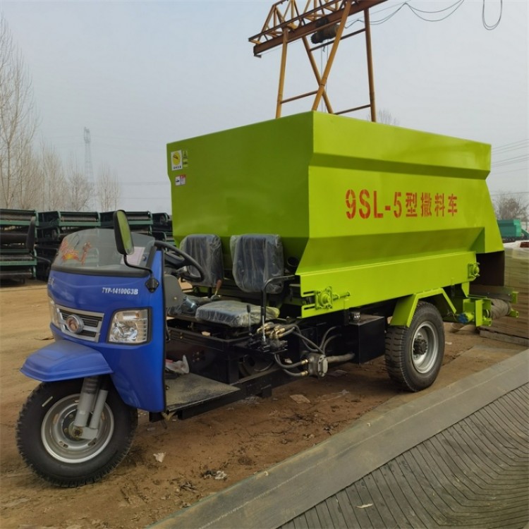 电动撒料车轴距小,转弯灵活,简单方便。此款喂牛羊猪送料车,适用于中小规模的育肥猪舍牛羊舍,把饲料装入喂料车,利用电瓶动力通过皮带输送把饲料喂入牲畜食槽,喂料方便,节省人力物力,撒料过程及速度可以控制,操作简单实用;绿色环保:全部使用电驱动,无噪声,无振动。快速标准喂料,减少劳力..产品有2立方、3立方、4立方、5立方,6立方也可根据现场尺寸定做,可单向投料,也可左右投料。适用于牧场场地空间小,通道窄,无法使用大型投料车的牧场,而本公司研发设计的电动发料车,则能满足各、中小型牧场的需求。