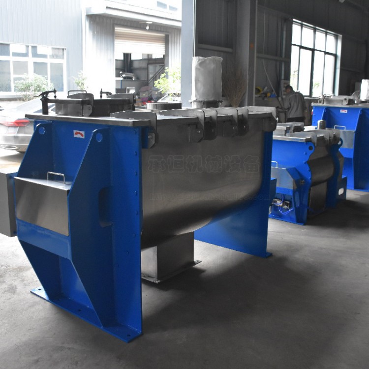 卧式螺带混合机广泛应用于食品、化工、医药、陶瓷、塑料、橡胶、涂料、染料、颜料、精细化工、冶金、矿产、新材料等各行业的物料混合生产。可进行固-固(粉料与粉料)混合、固液(粉料与液体)混合,特别适用于粘性或有凝聚性粉粒体物料的混合,以及粉粒物料中添加较多液体(或糊状物料)的混合。