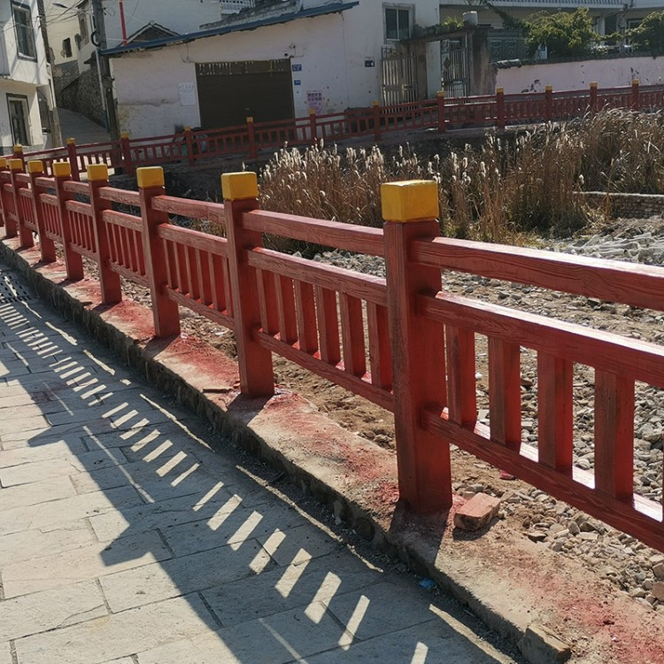 这款栏杆纹理逼真自然,色泽贴近原生实木,造型款式多样,风格古朴雅致,能够完美融入河道堤岸、公园景区、市政绿化、桥梁两侧、中式庭院、乡村步道及生态园区等多种场景,和周边自然绿植、园林风貌高度协调,打破普通水泥栏杆的生硬工业感,提升整体景观层次感与美观度。