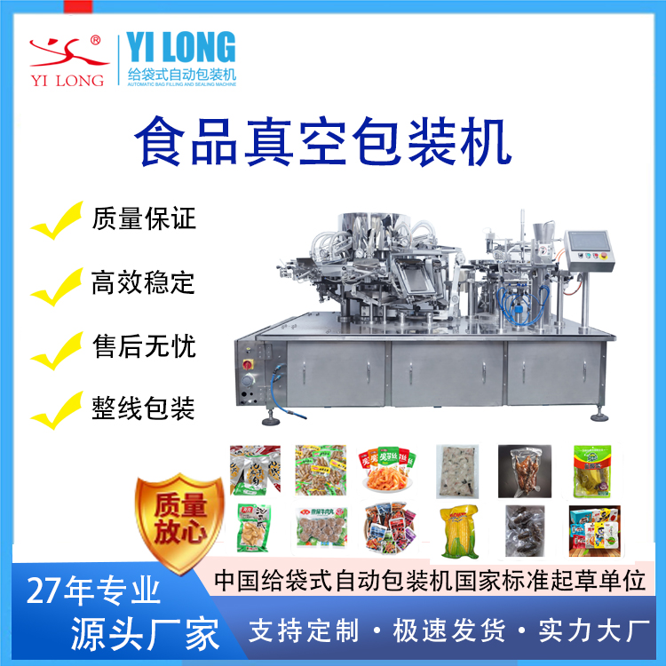 义龙真空产品给袋式包装机是开发的针对需抽真空包装物料的给袋式自动包装机,该设备可用于预制菜(即食、即热、即烹、即配类)、休闲食品(玉米棒、鸡爪、鸭脖、牛肉干)、海产品(海参、小鱼仔)、酱腌菜等产品的抽真空包装,封口密闭性好,包装稳定,为企业节省大量人工。具有高速包装功能,安装方便、操作简单的特点。