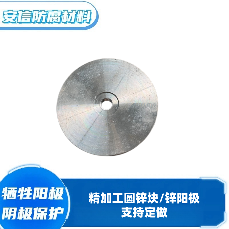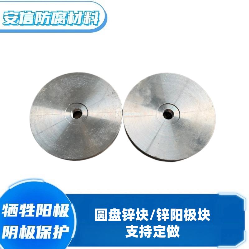 锌也可做成镯式阳极,主要应用在水下和海底管道上,一种是作成块状然后焊接在钢支架上形成一个圆形,还有直接做成半环状,直接扣在管道上。