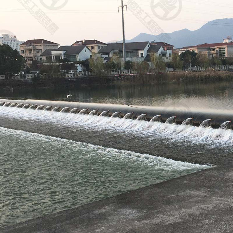 坝袋厚度是充水橡胶坝的1.5—2倍。使用寿命比充水橡胶坝要长。