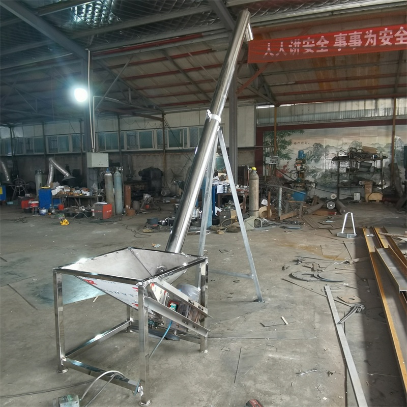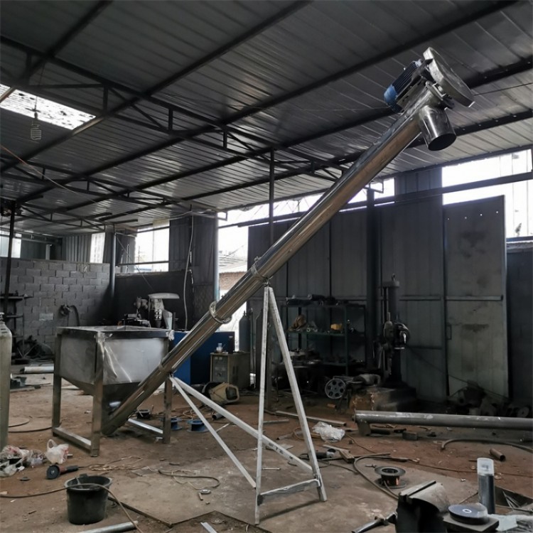 螺旋输送机旋转轴上焊的螺旋叶片,可将粉状或颗粒状料直接自动输送至振动筛内或高速混合机、拌料机等容器内,在接触原料部分,均采用不锈钢制作,输送过程中原料完全不受污染,不带入任何异物,能使生产过程中实现全封闭自动化。螺旋提升机主要用于输送粉状、颗粒状和小块状物料,如调味品、添加剂、化工品等,螺旋提升机不适宜输送易变质、粘性大的和易结块的物料。
