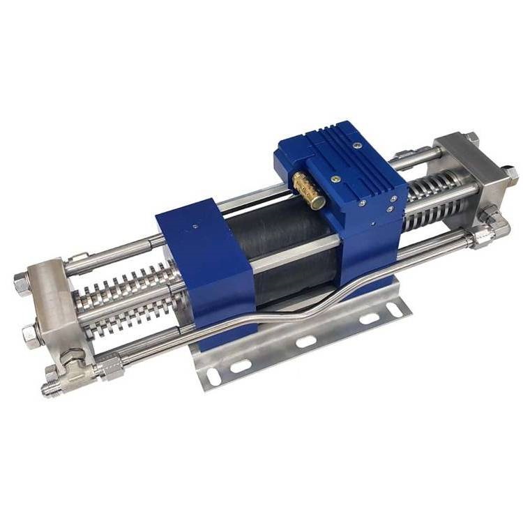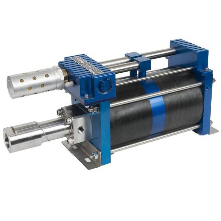 HII增压泵基于差动活塞面积比原理工作:通过大面积的气动活塞驱动小面积的液压活塞,实现压力放大。例如,压力比为25:1的泵,在150 psi驱动气压下可输出3750 psi(约259 bar)的液体压力 。当系统压力达到设定值时,泵自动停止运行,保持压力恒定且不消耗能量;一旦压力下降,泵会自动重启补压,实现节能。