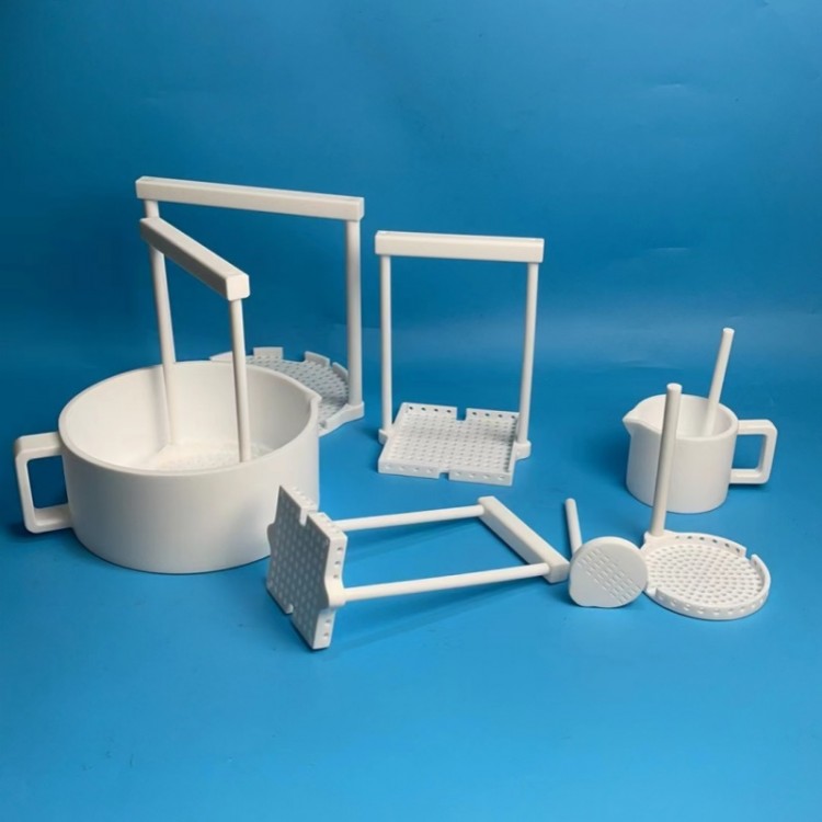PTFE也称:四氟、特氟龙、F4、Teflon;我公司的四氟产品是采用高纯实验级的四氟加工而成。四氟花篮适用于半导体、多晶硅、新能源、新材料、太阳能等行业;一般用于太阳能硅片摆放,清洗,泡酸拿上来等。