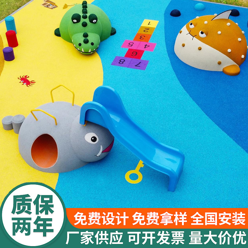 彩色EPDM与高强度胶粘剂结合的弹性体, 适合于各类幼儿园或健身路径。色彩鲜艳、 平整度高、图形丰富、粘接力强、环保无味.