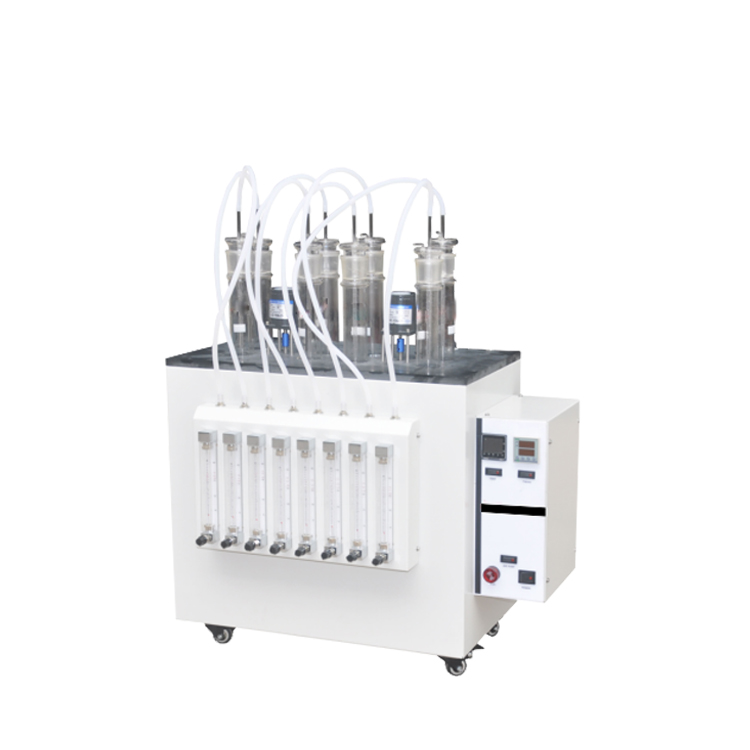 本仪器适用于测定未使用过的加抑制剂矿物绝缘油的氧化安定性,还可用于了解未使用过的矿物绝缘油在诱导期前后形成酸和沉淀物的倾向。机理:试样在铜催化剂线圈存在情况下,保持在120℃,同时通以恒定的氧气流,测定试样氧化产生的挥发性酸增加到相当于中和值为0.28gKOH/g所需要的时间,以诱导期(h)表示试样的氧化安定性。