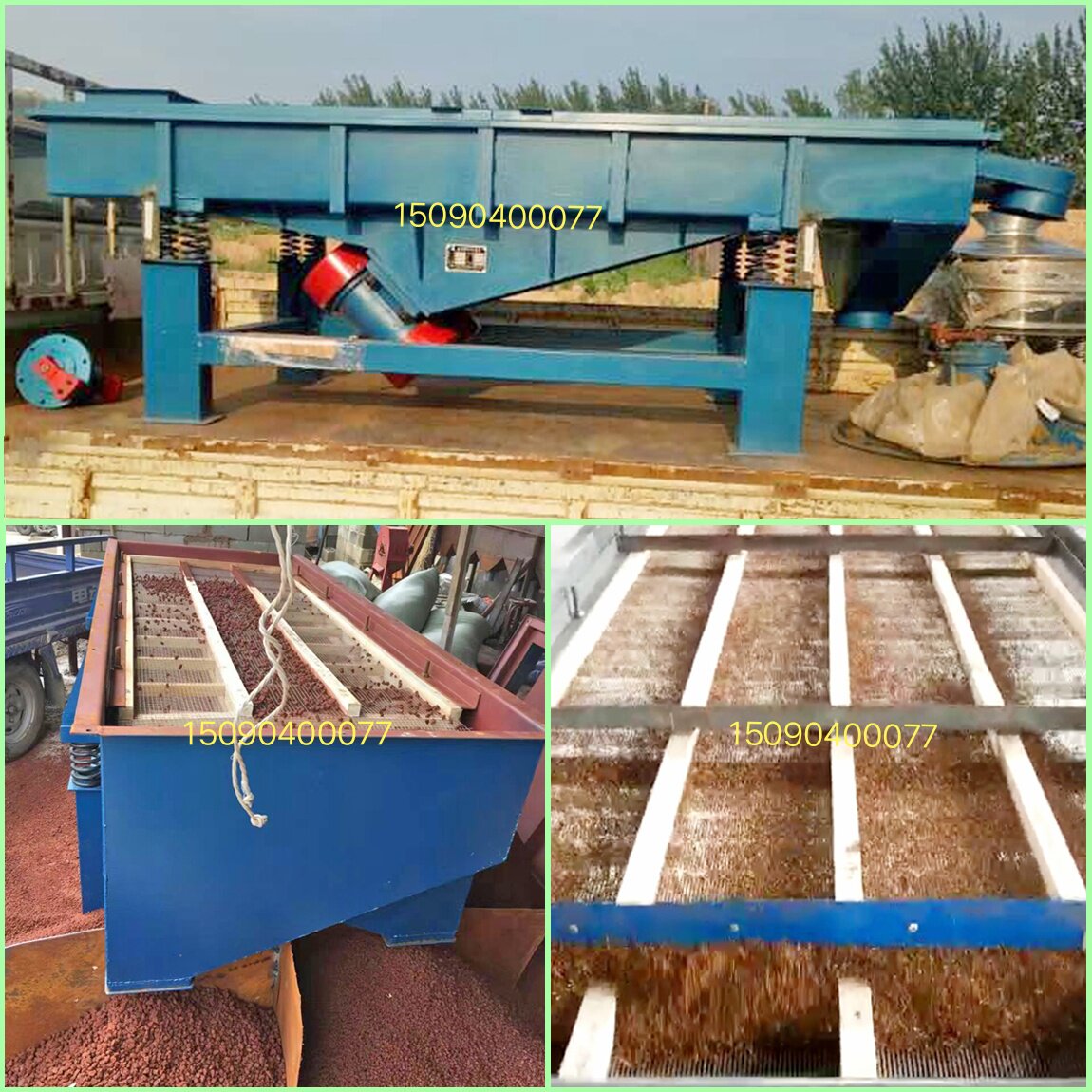 6、设备在停机时会产生瞬间的共振区,此时振幅和噪声会明显增大,属正常现象。设备在开停机前,筛面上不要有存留物料,筛网需经常检查是否张紧、破损,如有破损要即时更换。