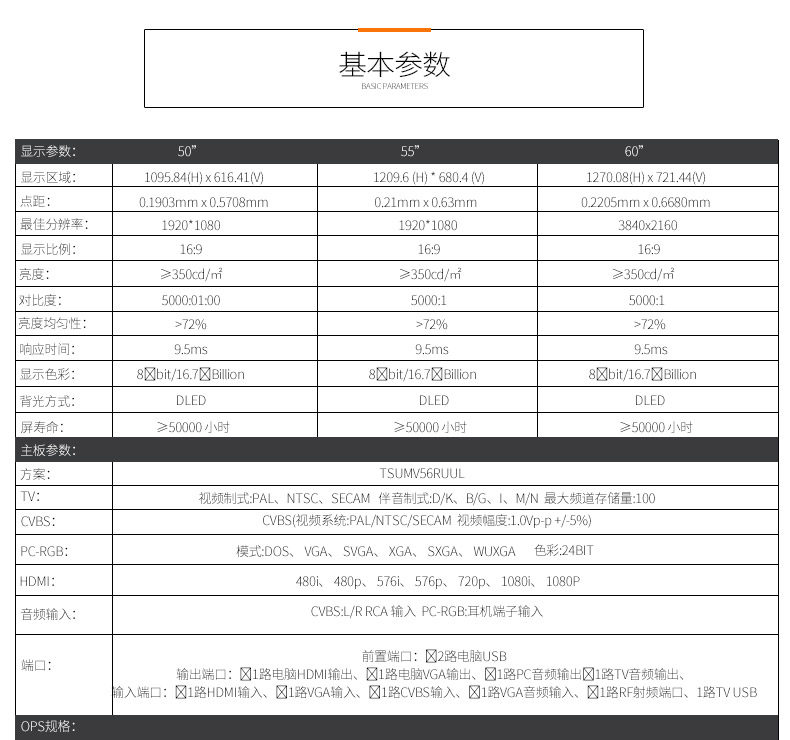 | 屏幕尺寸: | 50寸/55寸/60寸 |