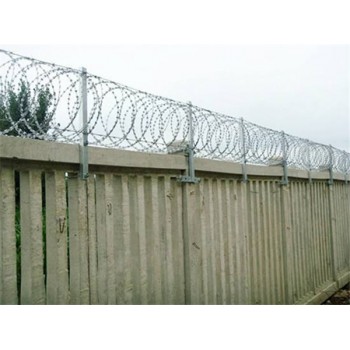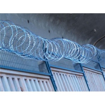 滚笼刺丝,滚笼刺丝价格,滚笼刺丝价格一改往日焊接钢丝网栅栏、刺丝网栅栏等产品,产品由锐利尖角镀锌钢板或不锈钢薄板做刀片,更加抗氧化,防腐,耐晒(但价格稍微贵一点)抗拉抗压能力强。张开后每交叉圈安装间距20cm,直径不小于45cm。纵向拉筋与支架的连接采用Φ2.5mm的冷拔镀锌钢丝绕2圈后拧紧固定。为此护栏网厂购置了超厚手套防止工人被刺伤。安装好的刺丝滚笼能很好地起到阻挡闯入者的作用。
