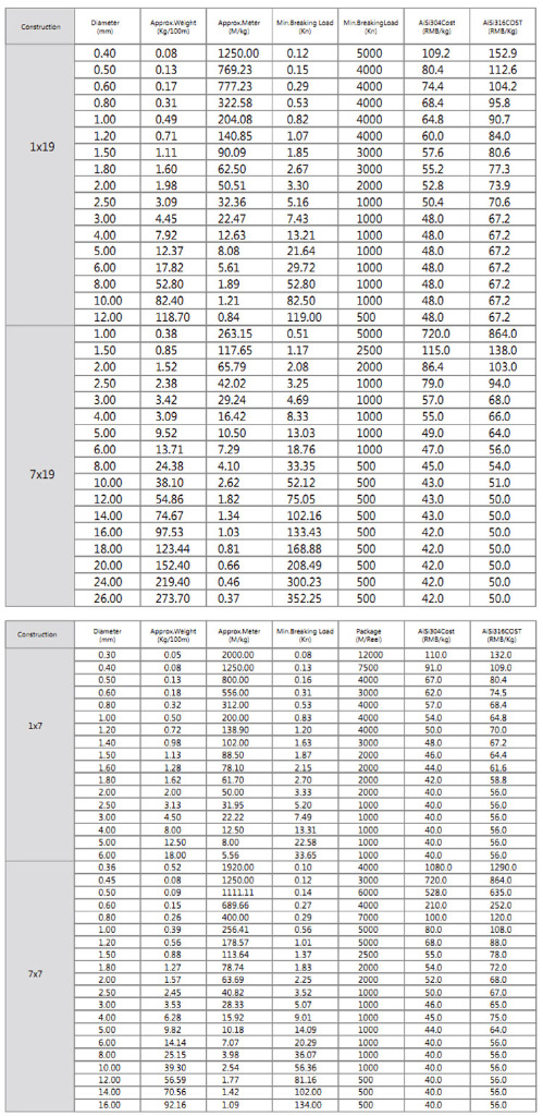 涂塑钢丝绳塑料重量参考表