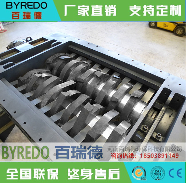 电路板撕碎机的常用结构主要有单轴,双轴,四轴三种。百瑞德电路板撕碎机系列产品采用微电脑(PC)自动控制,设启动、停止、反转及超载自动反转控制功能,具有低速、大转矩、低噪音等特点,轴承座采用对开型式,拆装换刀容易方便。