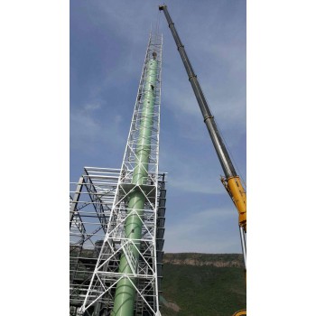 其主体采用改性耐高温性能树脂基复合材料。 对净化烟气的容量没有限制,且允许烟气量的变化范围较宽,对煤种和含硫量的变化范围适应性较强。脱硫塔使用寿命长,工艺保证脱硫后排放烟气温度在露点以上,对烟道、烟囱无腐蚀,脱硫塔生产的石膏晶粒很大,成分稳定,不含亚硫酸钙,很容易进行脱水,脱硫副产物无害化。