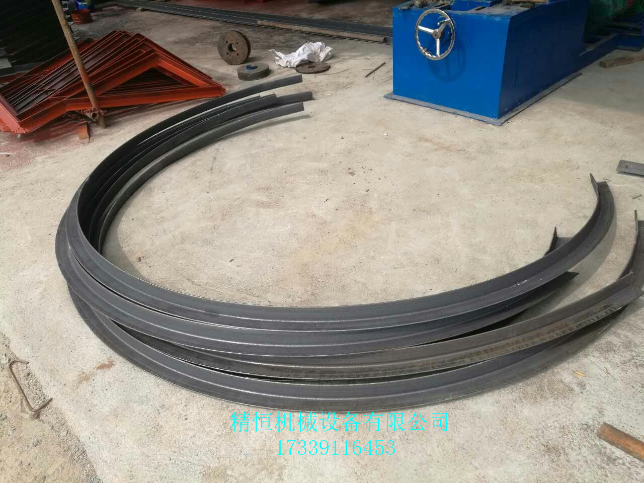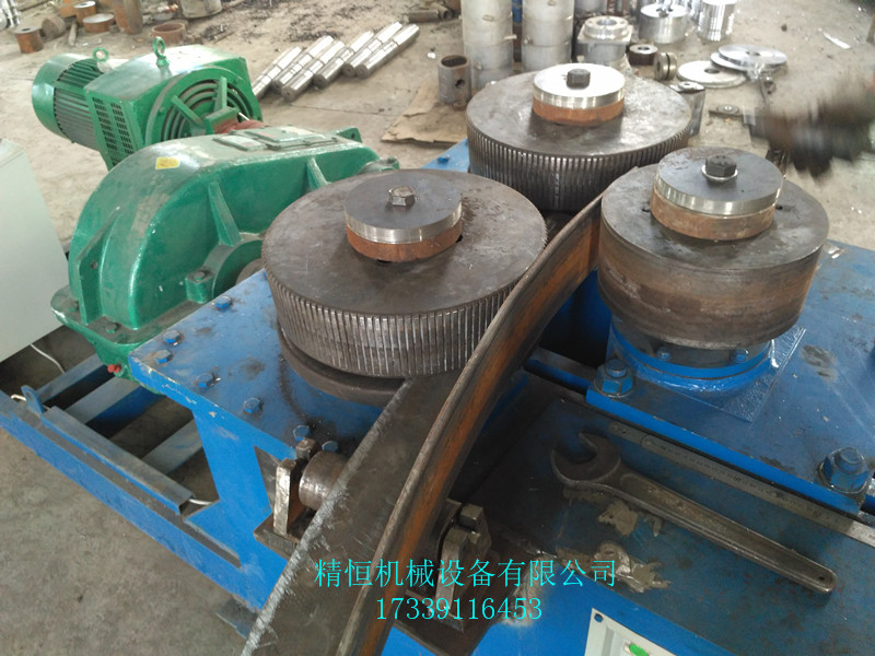 角铁法兰弯弧成型机安装使用:1、设备摆放平稳,四轮受力均匀。 2、设备使用前,先检查传动箱侧面油标所显示的油位,如果油位低于油线时,须从箱体盖上向箱体内注润滑油,直到达到油线位置。3、夏季注入40号机械油,冬季可注入20号机械油。正常使用半年后,换油一次,可保证设备正常运转和延长命。 4、操作人员了解并掌握该设备的结构及工作原理和保养检查点。 5、压轮进给时,先将上面圆螺母松开,进给到达一定位置后,再将圆螺母拧紧固定;被压轮进给时应将工件完全退出。6、摆线针减速机使用40号机械油。