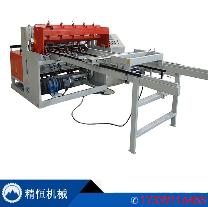 钢筋网片焊接机的自动送料工序:、将一定量的钢筋放入料仓电机带动小车抓钩将钢筋撑起小车抓钩到达位置时,钢筋完全搭在撑爪上由PLC控制钢筋的下料钢筋准确到达落料板上时,由气缸将钢筋推至下一步进行焊接。为了适应用户主电力变压器的容量和减小电流冲击,焊接电力电子控制采用了一次焊接分控送电的方式,即在焊接同一排纬筋时,将焊接变压器分开工作。.采用PLC编程控制,人性化的操作界面,易于操作及掌握。.采用PLC控制伺服电机拉网装置,使拉网尺寸更加标准、准确。.网片规格调整采用液晶触摸屏,所有焊接参数、生产数据设定方便、快捷。.纬筋落料几个结构新颖,采用步进电机自动落料,使纬筋放置更加准确。焊接网格品种多样化。经向网格可调整相关的零部件,纬向网格调整控制,可设置多种不同的。整套设备操作只需~人,大程度上降低人力成本。