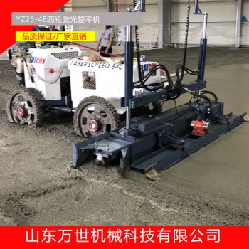 山东万世机械激光混凝土整平机厂家——YZ25-6座驾式激光整平机通过激光系统和电脑控制系统在自动找平的同时完成整平工作。激光整平机整平头上配备有一体化设计的刮板、振动器和整平板,一次性完成所有找平、整平、振捣压实的工作。