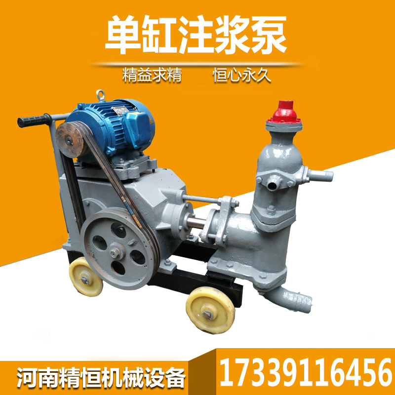 注浆泵故障解决方案:1、骨料过大的解决办法:输料管堵塞,应停止机器转动,关闭气路阀门,从弯头上拆下输料管,打开气路阀门,把转子的存料吹出去。然后检查输料管,用 木棒敲击堵塞部位,振松或掏空堵塞物(注意:在拆开出料弯头或管路之前要使输料管中的压力降到0)后把输料管再接到弯头上,用压风吹出,如果输送距离超 过40m,应分别处理每20m长的管路。2、干拌合料的含水量过大的解决办法:停止机器转动,关闭风路阀门,如果出料弯头堵塞,应拆开管路,清理弯头和转子料腔等,减少拌合料水灰比。3、输送气流压力太低的解决办法:停止电机和供风管路,如果转子阻塞,应拆开进风管和上风管,用刷子清理转子料腔等。4、进风管断面太小,压风机供风量小的解决办法:更换大断面风管,换大容量压风机。