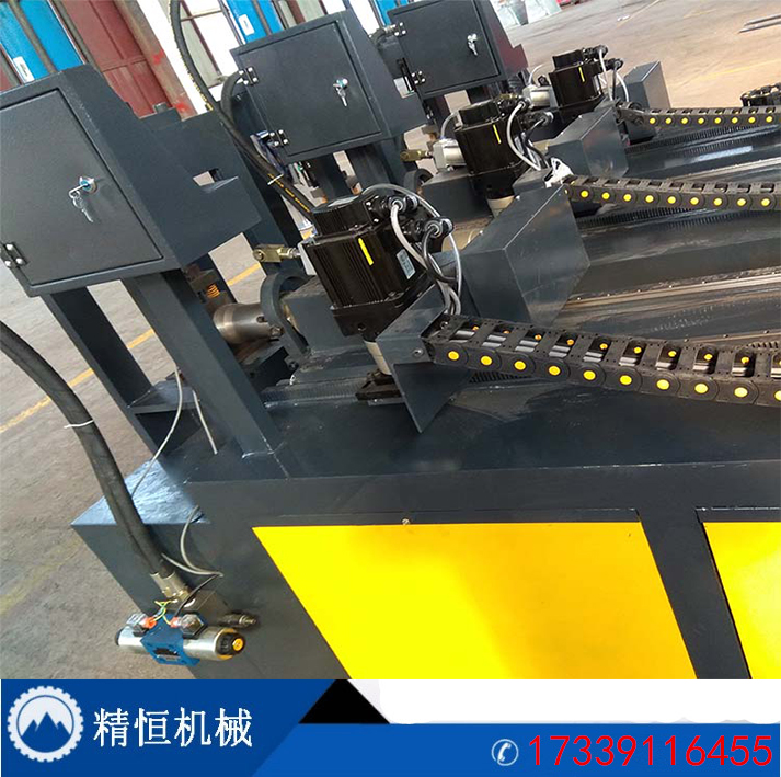 产品优势:小导管冲孔机 数控小导管冲孔机 全自动小导管冲孔机钢管加工设备1、冲孔、开料同时加工,亦可实现单纯冲孔或单纯开料加工。2、一次可以同时冲4支管,高速度可以达到每秒钟冲3个孔;3、一支管上可冲双面孔、单面孔,两工位可以同时控制,也可以分开独立控制;4、采用人性化人机交互操作界面,不需要专业人员编程孔距直接在触摸屏上输入,可任意控制冲等距或不等距孔5、系统自动记录台班冲孔数量和累计冲孔数量;可根据客户使用要求增加自动切料系统,可以同时进行自动冲孔、切料工作。6、系统完全自主研发,可根据客户的要求增加不同的功能,有自动工作模式与半自动工作模式,同一机器上可实现冲孔、冲弧口、冲角度、压枪尖工作,为企业节约设备采购成本;7、装模、换模简单,机台上有定位装置,模具对准定位装置后锁紧螺丝即可;8、广泛应用于不锈钢、防盗网、护栏、货架、金属家具、汽车配件、建筑材料生产企业等五金管件、型材冲孔、开料加工;可按要求量身定做自动化冲孔设备。