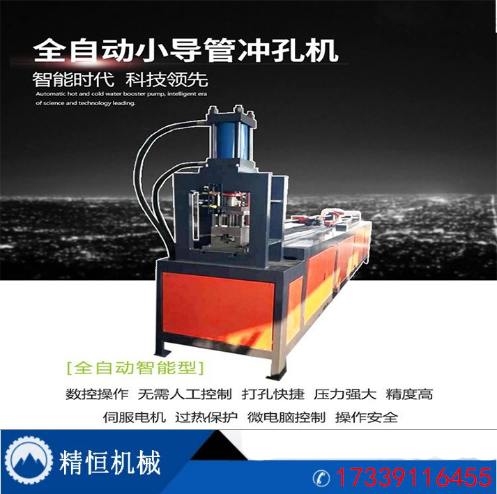 小导管冲孔机/小导管冲孔机多少钱小导管冲孔机每天正常工作八小时一人一机可冲孔20000万余孔冲孔速度:80-120次/分,无需定位,无需划线。孔距精度:±10C。工件冲孔长度:6M 单次送料长度:1000MM~6000MM。也可根据要求定制非标设备。操作界面简单易学,有自动计算功能,有单支等距冲孔(专业针对防盗窗管材冲孔设计程序,只要把料长,冲针直径,孔数输入电脑,就会自动计算头尾长度和孔距)。送料:采用液压/气动工件自动进料后,按孔距自动向外送料,送料采用高精度伺服电机自动控制送料。建筑钢支撑圆管冲孔,吊篮方管冲孔,钢模板角铁冲孔,展示架冲孔,防护栏冲孔等等经过多年来产品的不断研发、及客户现场实践应用,钢筋支护网焊网机、型钢冷弯机、剪板冲孔机、数控钢筋调直切断机、钢筋弯曲机等设备不但成为了公司主导产品,在国内高铁施工领域有着极高的口碑和知名度;尤为突出的是公司自主研发的钢筋支护网焊网机,因其具有生产效率高、操作简便、等优势,在国内外市场均有良好的市场知名度,市场占有率位居国内前茅。