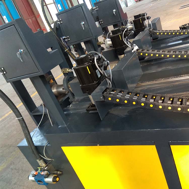 产品优势:小导管冲孔机 数控小导管冲孔机 全自动小导管冲孔机钢管加工设备1、冲孔、开料同时加工,亦可实现单纯冲孔或单纯开料加工。2、一次可以同时冲4支管,高速度可以达到每秒钟冲3个孔;3、一支管上可冲双面孔、单面孔,两工位可以同时控制,也可以分开独立控制;4、采用人性化人机交互操作界面,不需要专业人员编程孔距直接在触摸屏上输入,可任意控制冲等距或不等距孔5、系统自动记录台班冲孔数量和累计冲孔数量;可根据客户使用要求增加自动切料系统,可以同时进行自动冲孔、切料工作。6、系统完全自主研发,可根据客户的要求增加不同的功能,有自动工作模式与半自动工作模式,同一机器上可实现冲孔、冲弧口、冲角度、压枪尖工作,为企业节约设备采购成本;7、装模、换模简单,机台上有定位装置,模具对准定位装置后锁紧螺丝即可;8、广泛应用于不锈钢、防盗网、护栏、货架、金属家具、汽车配件、建筑材料生产企业等五金管件、型材冲孔、开料加工;可按要求量身定做自动化冲孔设备。