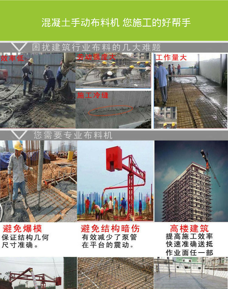 混凝土布料机是泵送混凝土的末端设备,其作用是将泵压来的混凝土通过管道送到要浇筑构件的模板内。