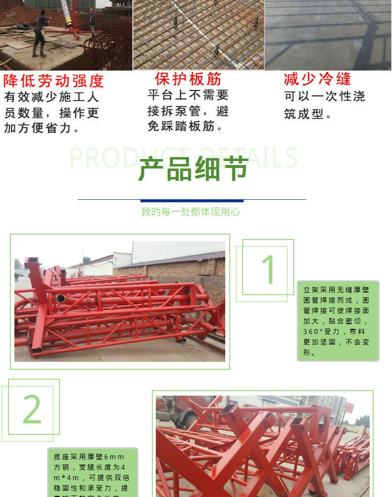 混凝土布料机是为了扩大混凝土浇注范围,提高泵送施工机械化水平而开发研制的新产品。移动式布料机 建筑工地用布料机 布料机专业生产厂家 现货供应。