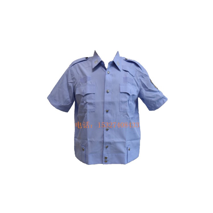 99式工艺标准和技术要求,采用精梳涤棉混纺斜纹府绸面料,适合夏季执勤,穿着舒适。规格:经涤纶异型长丝、纬涤纶异型长丝与棉混纺,纤维含量棉20% 克重130g/m2 。