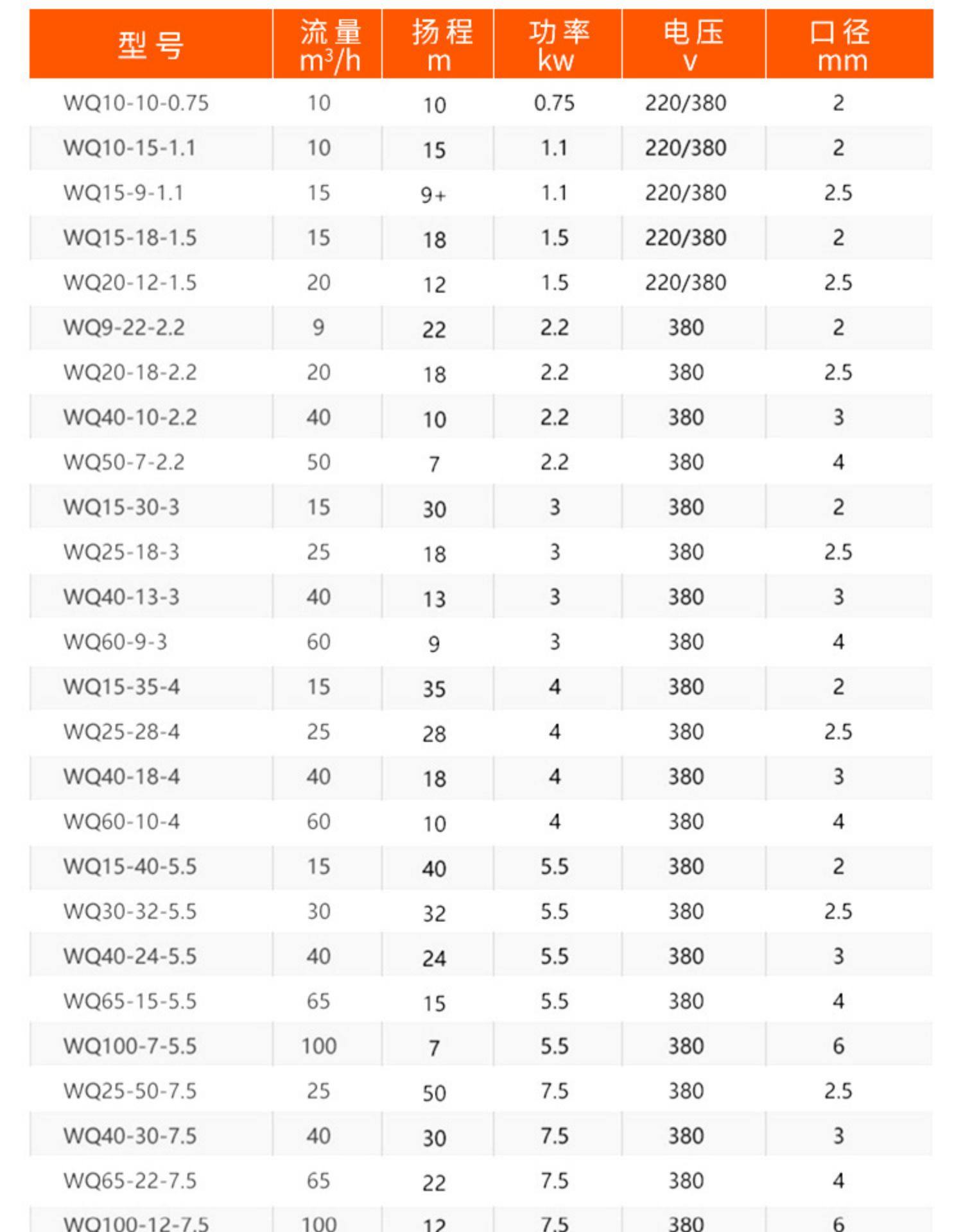 7、 WQ型潜水排污泵可根据用户需要配备双导轨自动耦合安装系统,它给安装、维修带来更大方便,人可不必为此而进入污水坑。