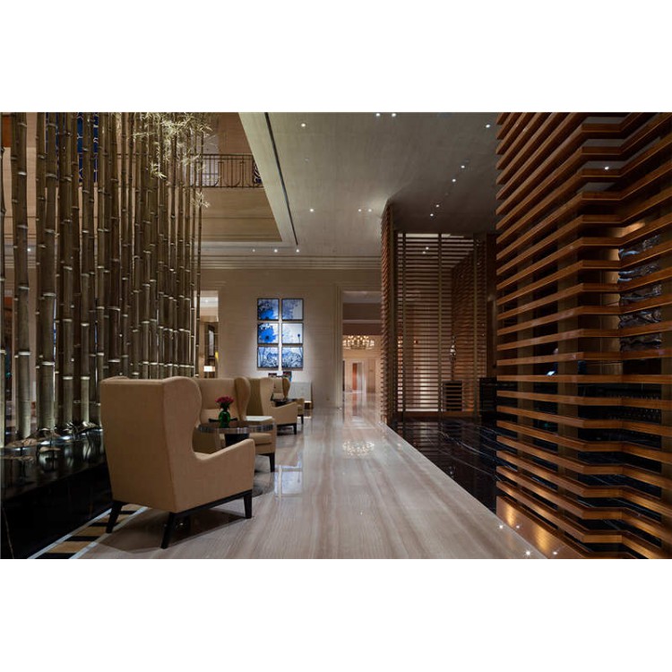 铝型材天花安装:铝型材天花的安装根据同一水平高度装好铝修边角,与结构一端的固定,吊杆与龙骨的固定可以采用焊接或钻孔用螺栓固定,将同一立面两侧阳角挂水平线,垂直线黏贴,固定,沿建筑顶层水平方向施工,并案规定预留出横竖分隔缝一便调整校正成品板。安装时,在墙面对应分格线内标出锚栓坐标,用电钻大锚栓孔并置入胀塞,使用胀塞时锚栓孔深度大于塑料胀塞1Cm。有误差时需要调整时,应即装即调轻揉移动,禁止将已黏贴的板外拉拨或着用橡皮锤上下左右均匀的拍打敲击板面。