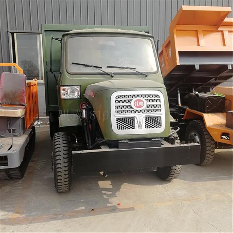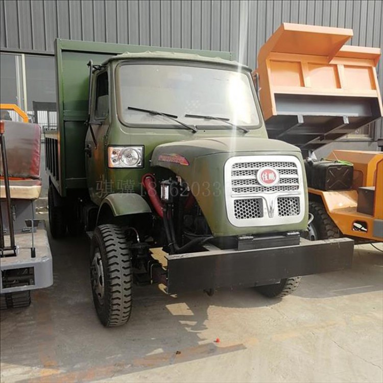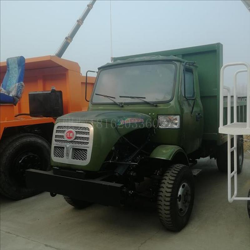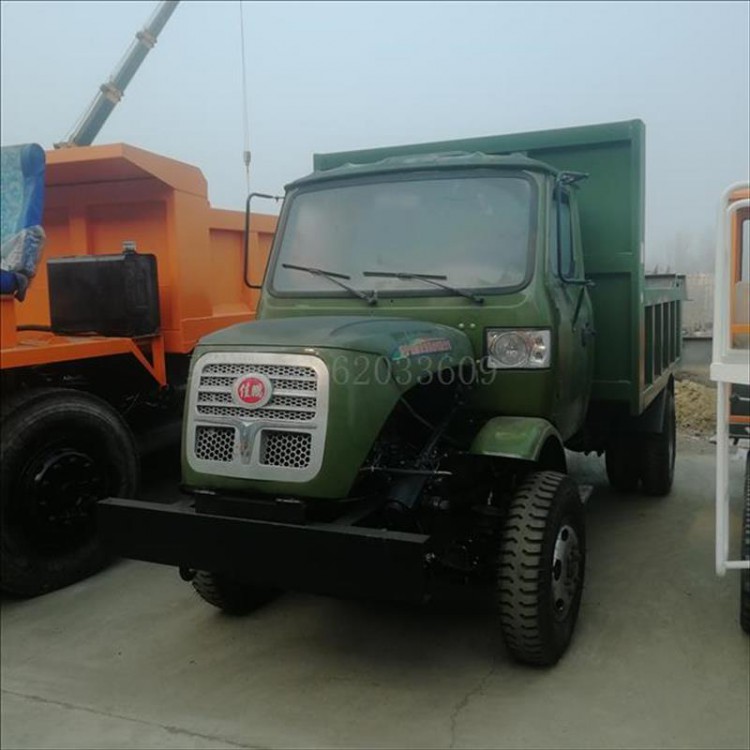 动力采用了单缸 双缸 四缸大马力柴油机带动,轴传动,四轮驱动,轮胎搭配了650 700 750 825 900的防滑胎,后桥采用了130 五十铃 1069 1098 153的后桥装备。货箱长度,宽度,栏板高度可以定制,刹车为油刹,断气刹方向为液压助力方向,双电瓶
