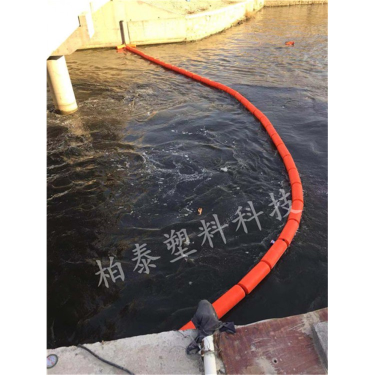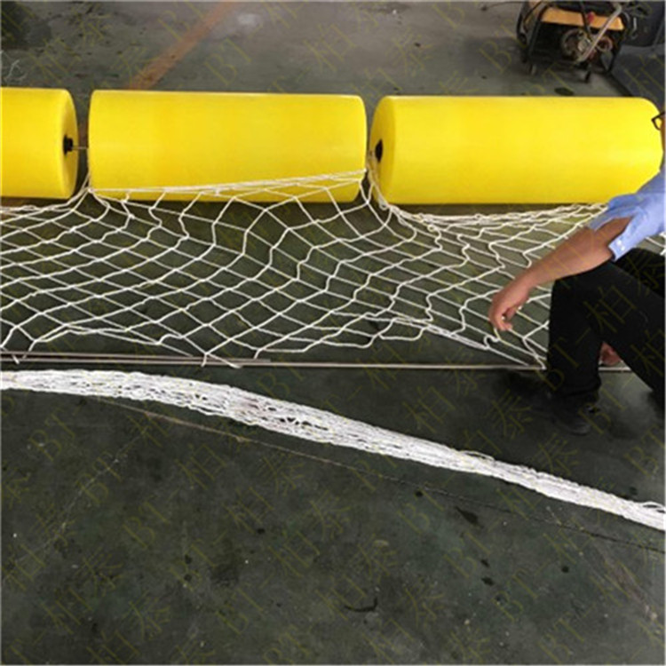 挂网清漂拦截浮筒_入水口拦污浮排厂家颜色鲜艳整体式中间通过焊接PE管达到通孔的效果,钢丝绳从浮筒中间空心处穿过,进行组合安装,整体组合以后也可在外部挂尼龙网拦截水下杂物垃圾,水上水下同时进行。