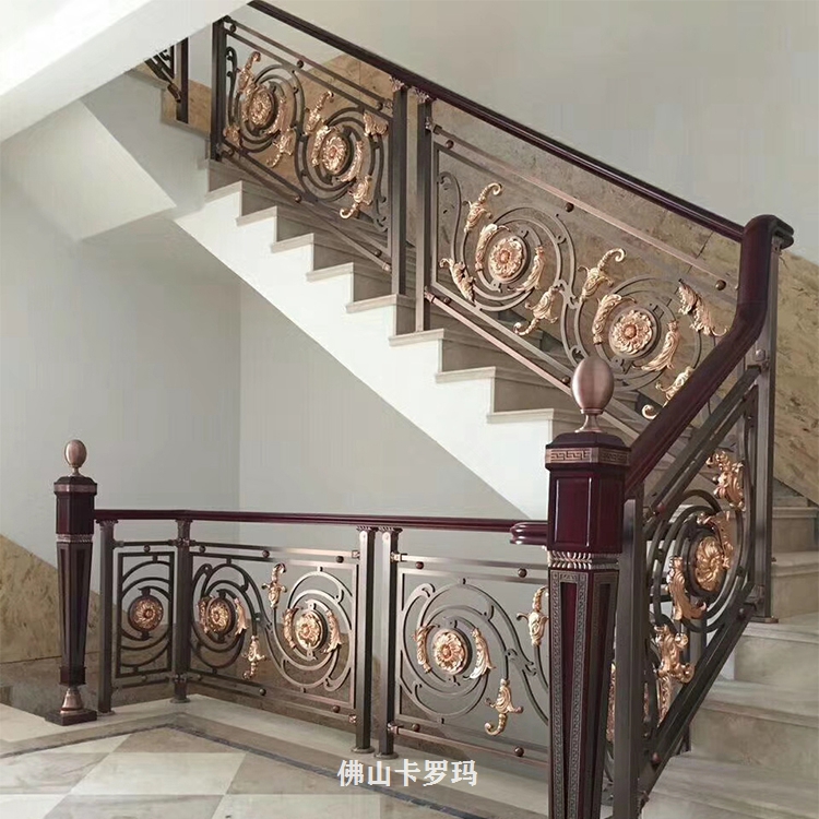 铜艺楼梯护栏得天独厚的长处可应用于多种不一样的外表抛光技能,较为遍及的有油漆、粉末涂层、阳光氧化、电泳。别墅金色铜浮雕楼梯护栏色泽新颖,造型、花样、风格可按照您的要求来定制。铜铜楼梯不仅看上去是非常精致,耐用性也是很强,它采用了实心的铜艺以及铜艺材料,在使用的时候是很坚固的,使得的过程中不会出现褐色或者氧化等情况,即使使用了若干年之后,还是会颜色依旧,因此实用性非常强。