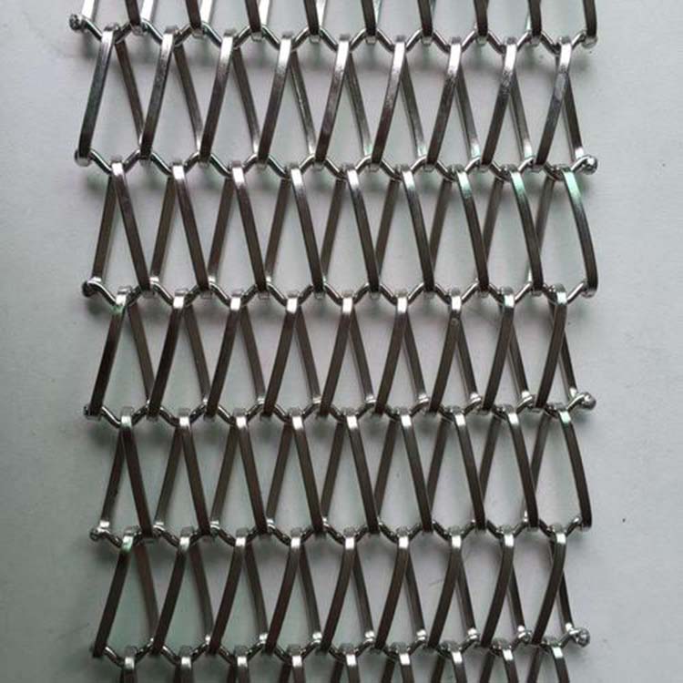 金属装饰网是由金属棒材或金属缆线编织构成的,按照织物的编织形式,由横向金属棒材穿过竖向金属缆线构成的各种图案,使用的材料包括不锈钢和高强度耐腐蚀铬钢等金属。