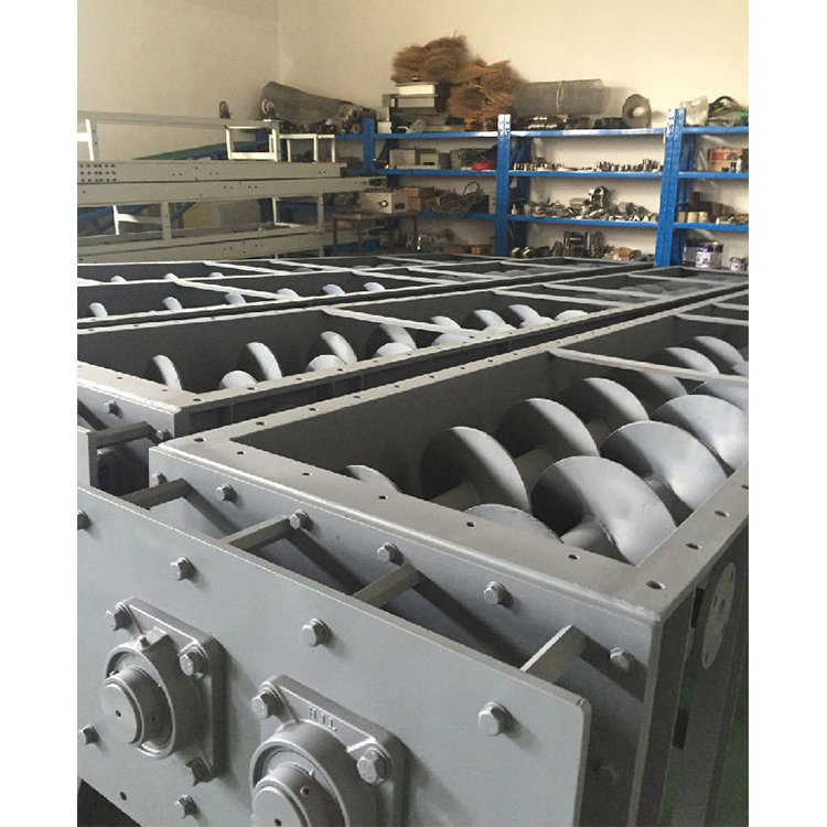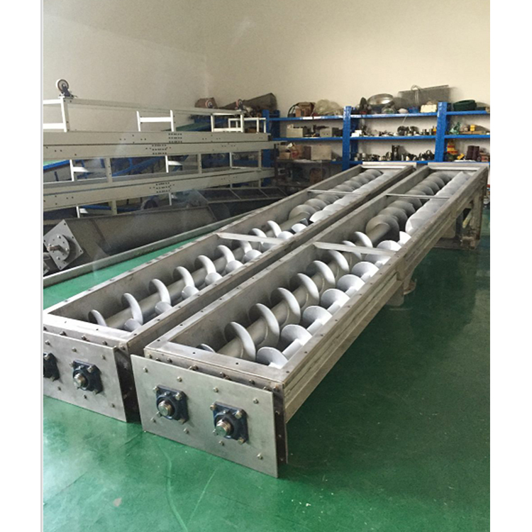输送机槽厚度3.0mm,制成U型断面,除进料口敞开外,其余部分沿螺旋槽加平盖封闭,输送槽及盖板全部采用不锈钢材料制造。