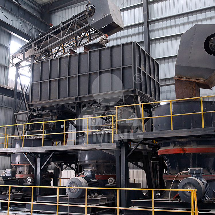 其中≥200mm物料经过颚破破碎后,随5~200mm物料一同进入块石缓冲仓,块石缓冲仓的物料通过皮带输送机送至HST315S2粗碎单缸圆锥破二段破碎,经过粗碎圆锥破碎后的物料进入2YK3X3075振动筛进行筛分处理,将≥40mm物料返回中石缓冲仓(当中石缓冲仓压力较大时,可返至块石缓冲仓),再进入HST315H2细碎圆锥破破碎和S5X2760-2振动筛筛分形成闭路循环。
