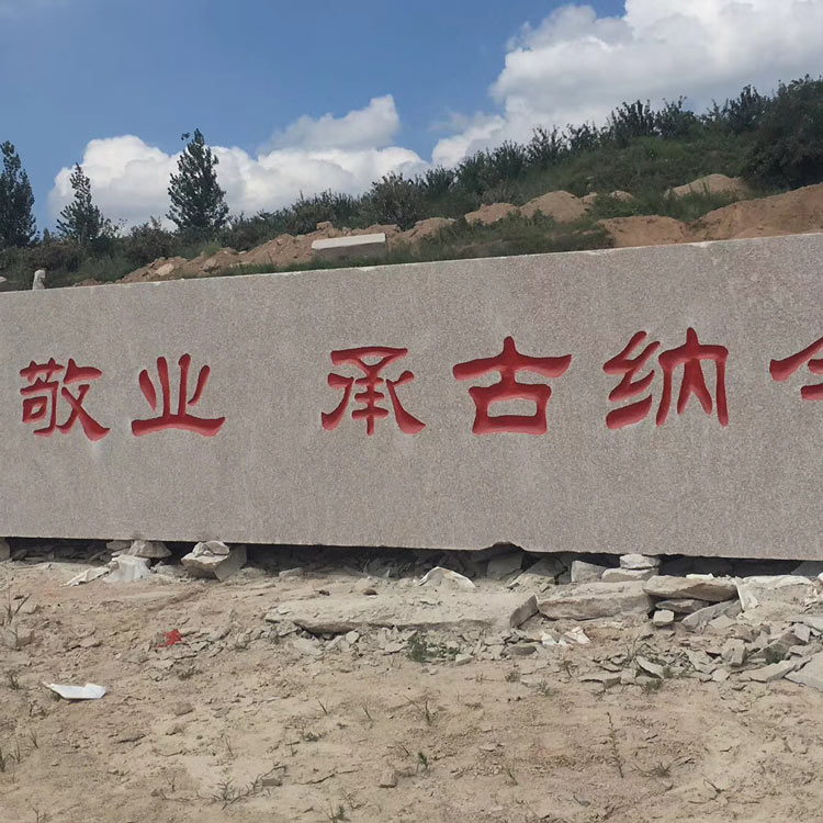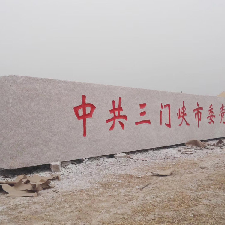 门牌石是经过加工成型后用作门牌或屏风的大型石材,属于园林石材,也是奇石的一种。门牌石主要用于企事业单位、机关、院校、城市、景点等用于门牌石、雕刻石、刻字石等标志性的形象艺术设计制作。 采用花岗岩门牌石制作的单位门牌石具有气派、大方、时尚的特色,文化底蕴深厚,令人赏心悦目。门牌石的外形多见于长方体、正方体、不规则长方体、斜体、不规则椭圆体、球体、圆柱体等等。