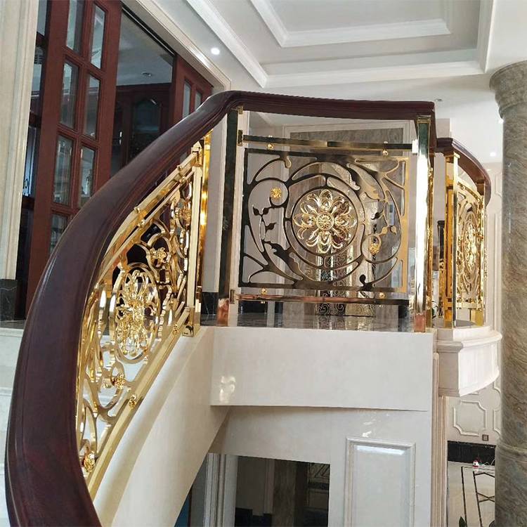铜铝K金扶手是联系上下空间的枢纽,较好生产厂家能提供专门化服务,从铜铝K金楼梯的结构、施工上对楼梯与家居环境进行协调服务,避免楼梯在美与实用两者中走入单纯的现象。现在我们现实生活中,对于家居装饰选择,多了很多方向装饰,其中大部分人群投向了铜楼梯与铜楼梯扶手的装饰选择中。