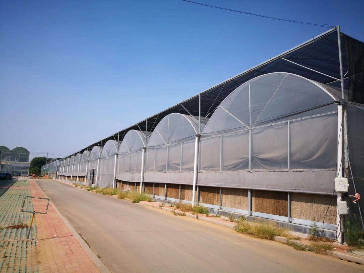 薄膜连栋温室优势:薄膜温室连栋多为圆拱型,屋面及四周均采用进口PEP复合功能长寿无滴膜覆盖,该类温室跨度大,室内宽敞明亮,通风效果好,为室内设施和人员流动提供更大的空间。主体结构采用装配式热镀锌骨架,保证了温室骨架的整体防腐能力。主拱架、檩条、立柱均采用热镀锌矩形钢骨架,开间主拱架之间采用热镀锌管,主拱采用M型吊杆结构,以增强屋面承重荷载。所有杆件之间均采用螺栓装配连接,连跨立柱顶端装有大流量排水槽。覆盖材料可多种组合,如温室四周垂面可选用中空PC阳光板覆盖,增强保温效果和抗冲击能力。也可选用浮法玻璃等其它材料,以增强展示效果,且延长了使用寿年。顶部塑料膜可以单层也以可双层等等,给用户提供了更大的选择空间。