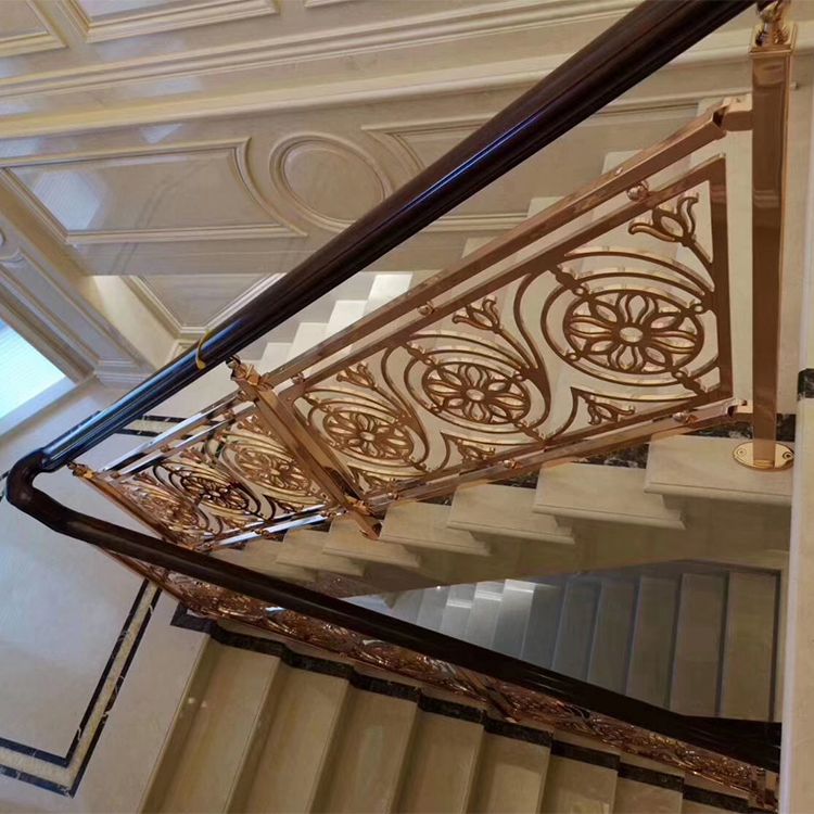 现在越来越多的铜元素加入到居室家装中,其在楼梯的装饰中应用较为广泛,市场上卖的木地板可以拿来直接铺装做踏脚板,铜楼梯扶手也可以选择相应的铜来做。随着楼梯业的不断发展,科技与时代的不断进步发展,生活水平的提高、等档次住宅已逐渐进入来越多的视野,在家居装潢中,原先市场占有率不高的楼梯材料,现在也畅销了起来。现在虽然楼梯品牌所占的摊位和其他装潢材料相比并不算多,但每家店铺的陈设都很考究,各种材质和价位的楼梯尽可能展示在顾客面前。而铜楼梯仍是市场占有率的一种,消费者喜欢的主要原因是铜本身有温暖感,加之与地板材质和色彩容易搭配,施工相对也较方便。现在在楼梯的装修已成为了现代人的又一家居典范,在进行家庭装修时候对铜楼梯的考虑需要注意到材质的抉择,卡罗玛金属制品有限公司欢迎你的到来。铜楼梯扶手的性能特点非常多,突出的就是其外观特色,以铜楼梯扶手为主的建筑,中华古来有之,铜本性温润,耐腐蚀,耐氧化,不易受损,寿长于木材,较之砖瓦,铜扶手更耐岁,而且风姿,色调绚丽,浑厚沉稳中不失风雅,苍古盎然中蕴涵新意。通过精工打造,匠心诚厚,诸形工美。承激进建筑之典雅,又不失材质的坚固,且防水,防腐,将精湛的铜工艺与现代科技结合,可令有限的空间挥发无限的气度。有雕花、镂空、民族特色风格、现代艺术风格、欧式风格、古典艺术风格等。