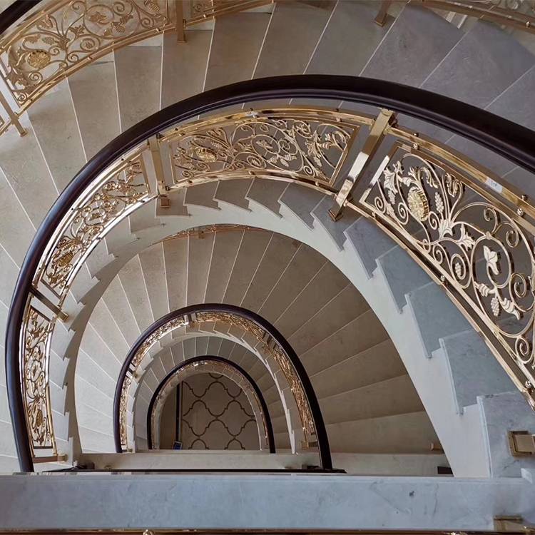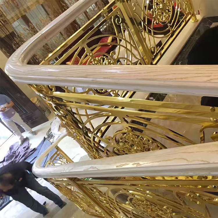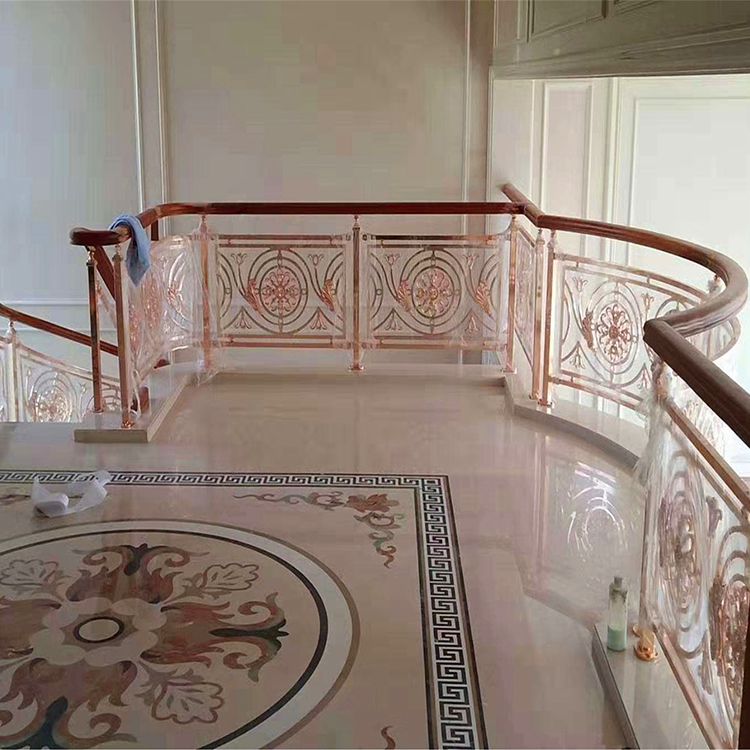 卡罗玛金属制品有限公司采用技术研制开发的铜艺楼梯扶手等多种系列产品,以它良好的风格,亮丽的光泽,精美的造型,舒服细腻的手感,漂亮典雅的品位而被广大用户所认可,为新世纪城市建筑、酒店、宾馆、娱乐场所装饰、时尚住宅的装饰装修整添了一道靓丽的风景。根据平面放线预先制作休息平台板底模,拼块编号,实地吊线,铺休息平台板,然后再铺设两平台板之间的曲线腹板。曲线底板铺设的关键是外弧底板高度及它的圆滑度的控制。好的楼梯装饰钛金楼梯护栏色泽新颖,造型、花样、风格可按照您的要求来定制。客户至上,用心服务,你使用放心,我们努力用心。如遇到质量问题,可来电反馈,我司将会为你很美解决。铜护栏悠久的文化,经典的气质,华丽的而不外露,变现出一种与自然和谐美好的状态,仿佛新中式铜艺雕花护栏就是在自然中长出来的一样。