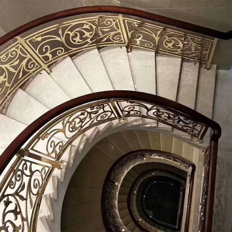 卡罗玛铜栏杆有传统楼梯不具有的特点与风格,更加经久耐用,造型丰富多样,设计良好而时尚,可作为一些场所的装饰使用,提升空间结构感,增加场所整体的厚重与大气氛围。适应性是现代经过专注设计的金属楼梯重要的特点。不仅时尚,而且花色众多,颜色也有很多,红古铜、青古铜、玫瑰金、米黄银、土豪金、砂金、K金、香槟金进行选择,适应家庭分区、大型公共场所隔断等各种场合的需要。当今很流行的新款玻璃楼梯,造价虽然比普通的玻璃楼梯贵,但是贵有所值,因为镶边是铜板的材质,给人呈现的不是一种单调的透明感,而是新中式风格的格调,别具一格。因为 铜材质的楼梯不仅仅十分耐用,而且款式也是非常多的。各个酒店还可以根据自己酒店的装修风格前往相关单位定制一定花式的楼梯,这样便能够使得酒店的氛围变得更好。楼梯是展现欧式古典较舒服一面的地方,而白色则张扬着高雅、漂亮的法式浪漫,深受女人的喜爱。豪华的土豪金电镀表面处理与个性化设计,花格镂空铜艺楼梯护栏为您呈现出不一样的轻奢体验。不仅仅是高质量生活的享受,更是一种精品的生活方式!为现代生活增添无限的魅力与雅趣!