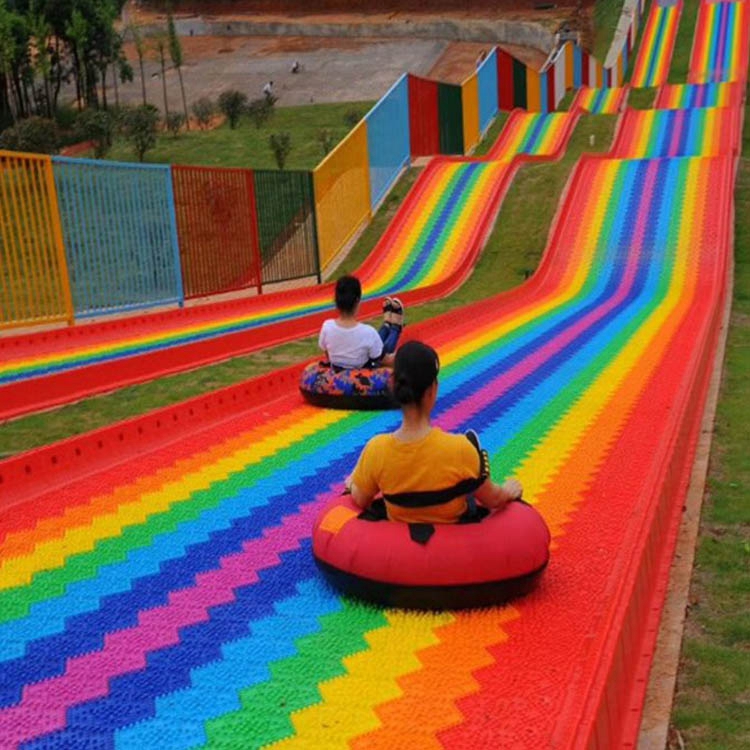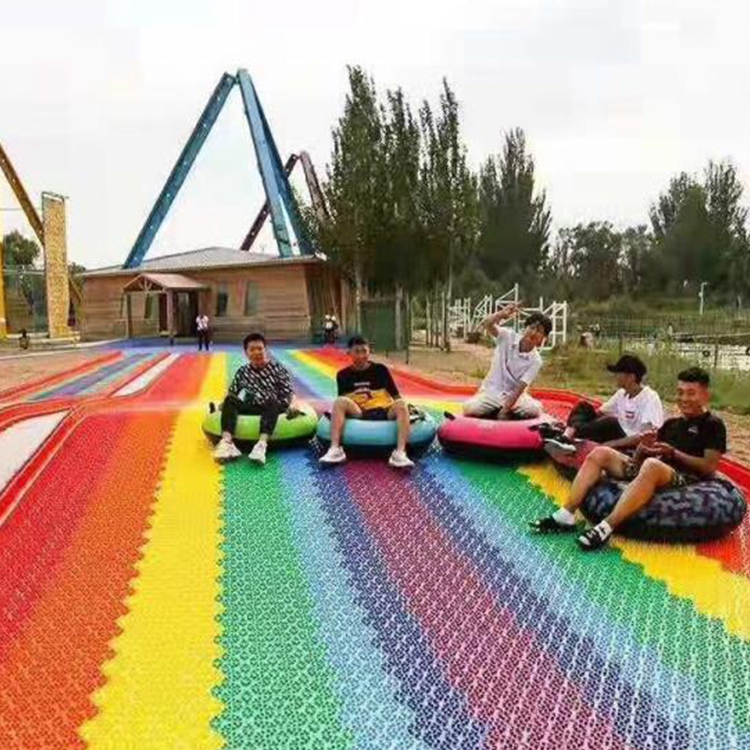 彩虹滑道可以同时两个人、三个人、五个人玩耍,不管是大人小孩都可以在滑行的过程中上行下行逆行旋转等各种体验可以有效地调动游戏者的情绪,胆小的尖叫,胆大的看着兴奋,游玩过后一起分享交流经验,多了不少谈资