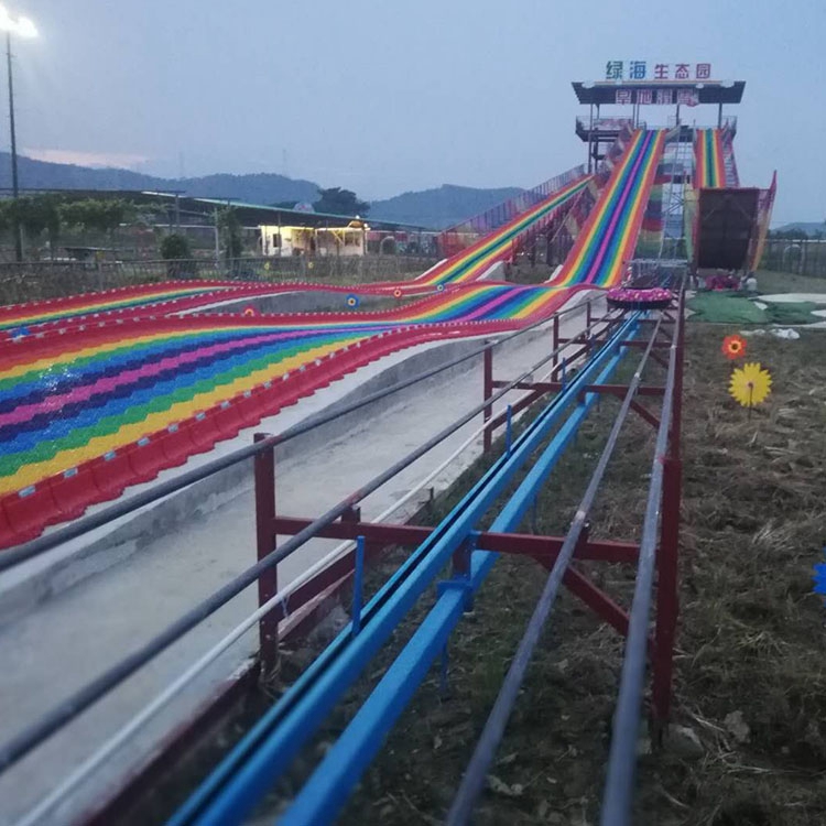 场地坡度难易程度不同,种类较多,就这给了建设者多样的选择性。小到几百平方米,大到几万平方米,景区、度假村、公园、度假山庄、生态园区等。 可以根据季节特点,建造自然彩虹滑道和人工彩虹滑道;根据不同的场地大小,不同的地质结构,不同方法要求,可多样化选择相对应大小的彩虹滑道。从城市到偏远郊区,都适合建设彩虹滑道, 让您的场地变成七彩乐园。