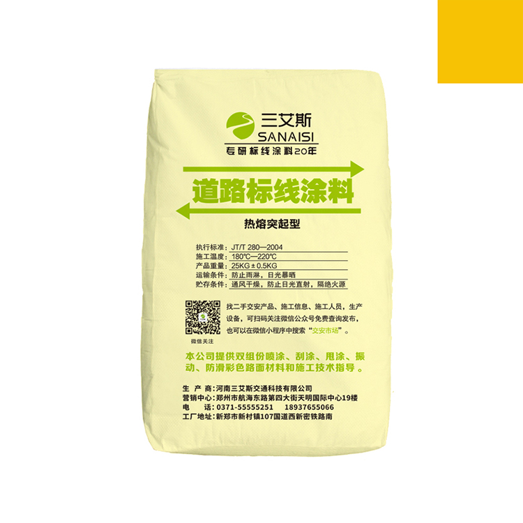 河南三艾斯交通科技有限公司(简称:三艾斯SANAISI)是一家道路标线涂料生产厂家,主营热熔标线涂料,常温漆标线涂料,双组份标线涂料,自喷漆标线涂料等标线周边产品。诚信,是做人的基本原则,也是行商的根本准则。从事标线行业十余年,三艾斯一直坚守该准则,用诚意换来了合作伙伴的信赖与支持。客户,我们称为合作伙伴。因为我们坚信我们和您之间不仅仅只是生意往来,更是基于信赖而产生的合作关系。