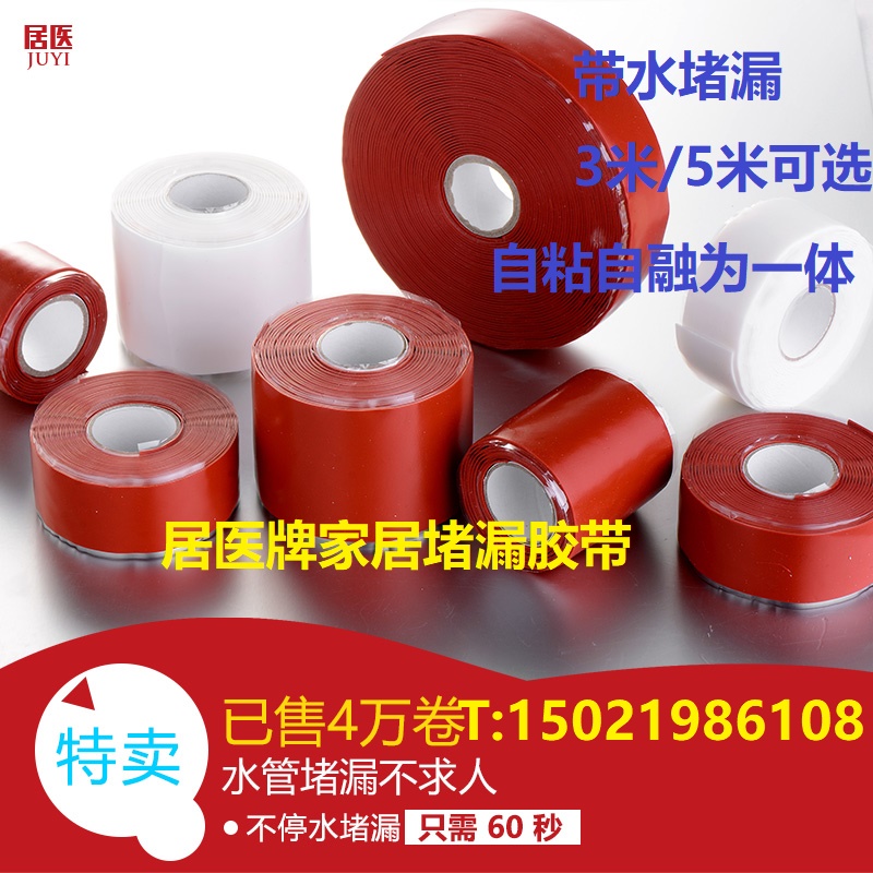带压堵漏胶带是本公司研发的新技术产品,简单实用,适用于各种大小管道带压应急封堵。在出现泄露的情况下也可带压直接堵漏,带压止漏胶带本身有高弹性,自身伸缩率可达到5倍以上,用力拉紧缠绕后每层胶带受力自粘密封为一体,从而快速带压止漏密封,用不完的多余部分可用剪刀剪断下次继续使用。