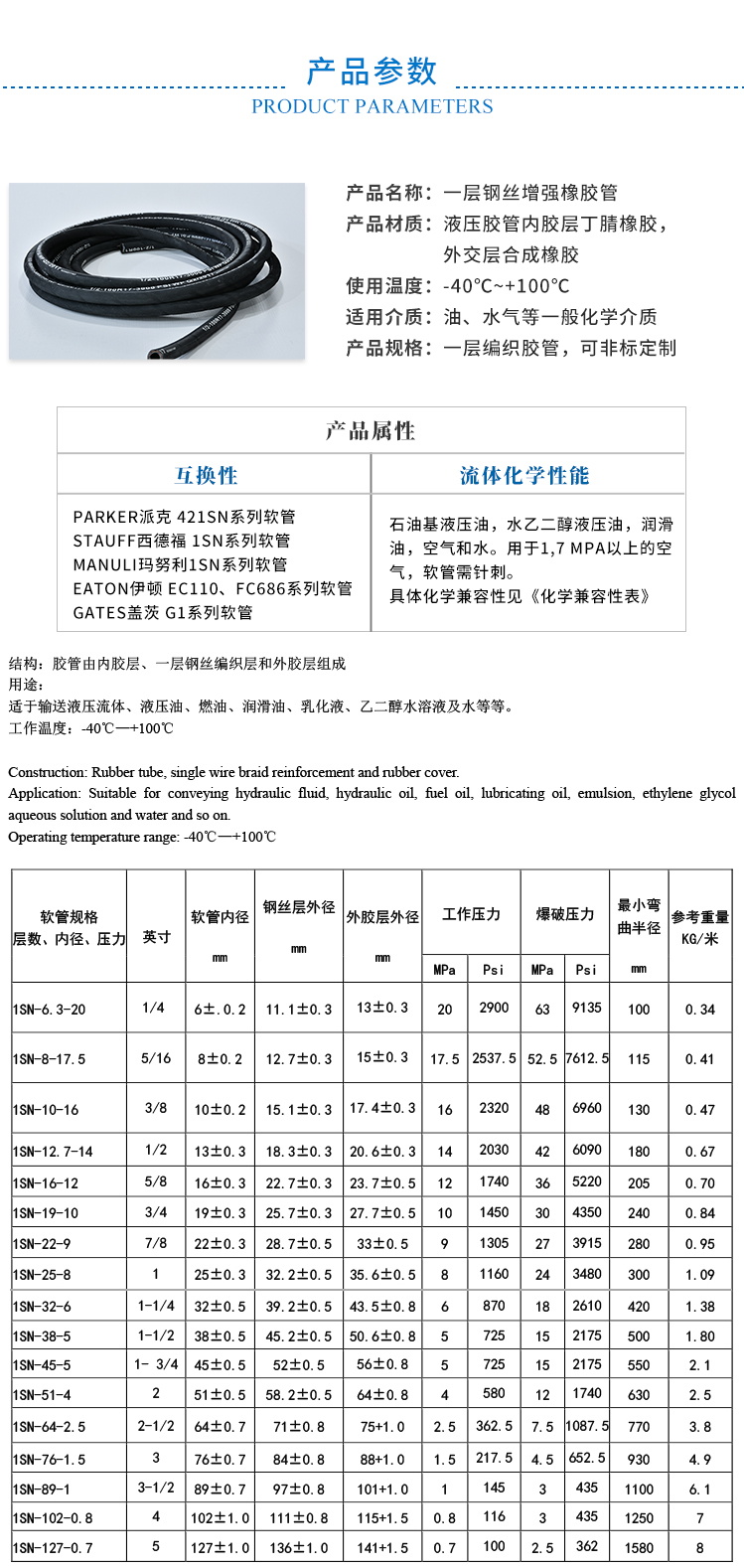| 产品规格: | 一层编织胶管,可非标定制 |